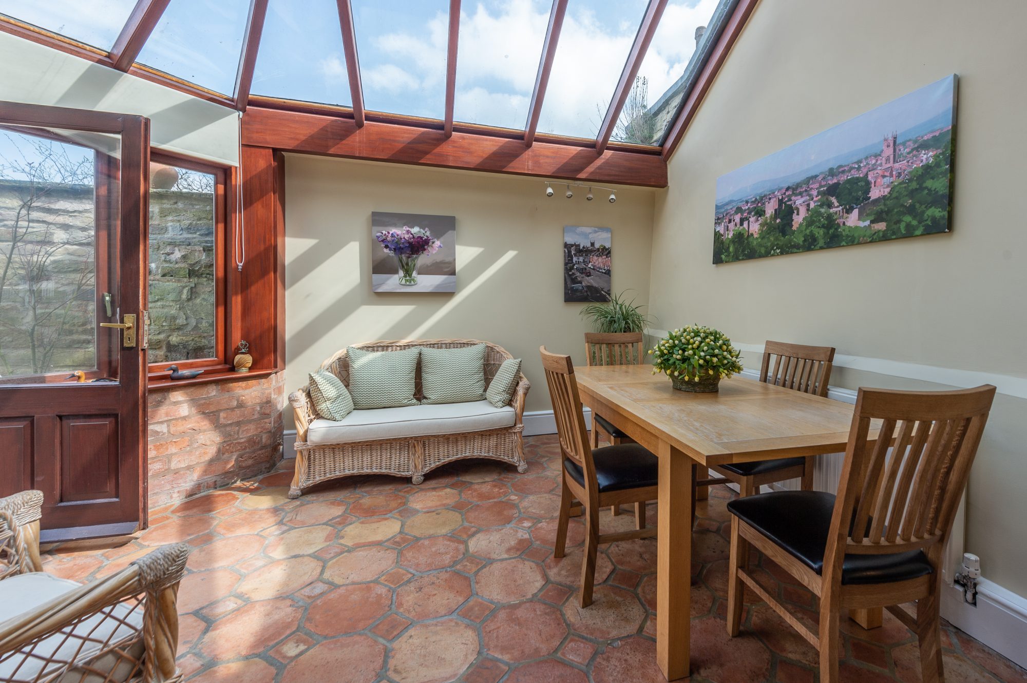 Stone Cottage is set snugly by the medieval Broad Gate with wonderful views up Broad Street. The cottage is 250 years old and its thick stone walls allow for a cool summer break or a cosy winter retreat right in the heart of ancient Ludlow. Extra warmth, light and living space is offered by the large, sunny conservatory.